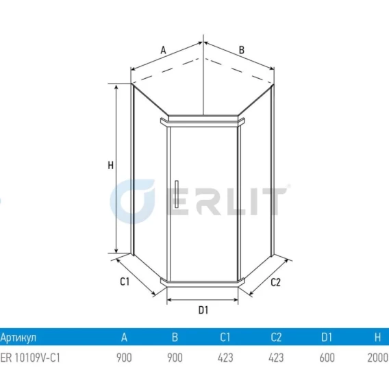 Душевой уголок 90x90 см Erlit ER10109V-C1 прозрачное