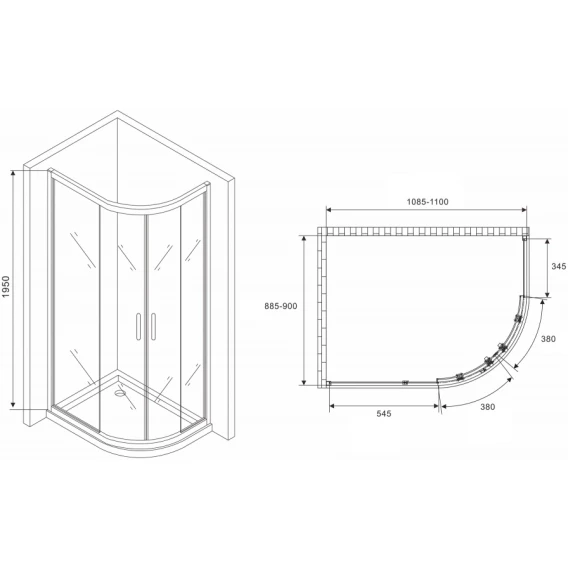 Душевой уголок 110x90 см Abber Schwarzer Diamant AG01119M матовое