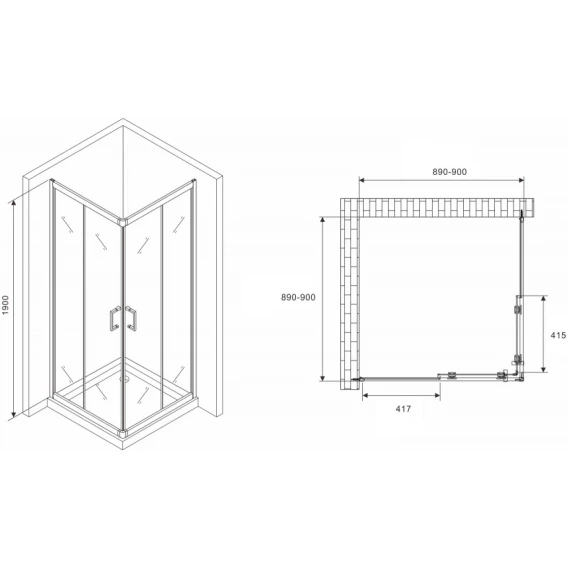 Душевой уголок 90x90 см Abber Schwarzer Diamant AG020905 прозрачное