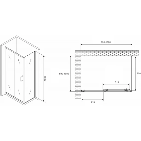 Душевой уголок 100x100 см Abber Schwarzer Diamant AG301005-S1005 прозрачное