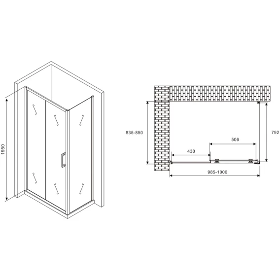 Душевой уголок 100x85 см Abber Schwarzer Diamant AG30100B-S85B прозрачное