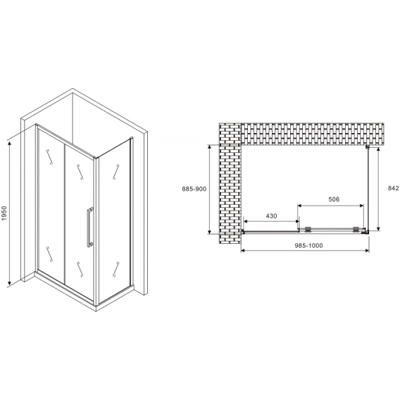 Душевой уголок 100x85 см Abber Schwarzer Diamant AG30100H-S85-S85 прозрачное