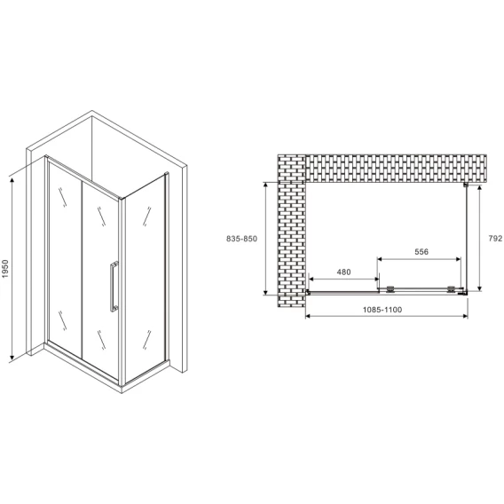 Душевой уголок 110x85 см Abber Schwarzer Diamant AG30110H-S85 прозрачное