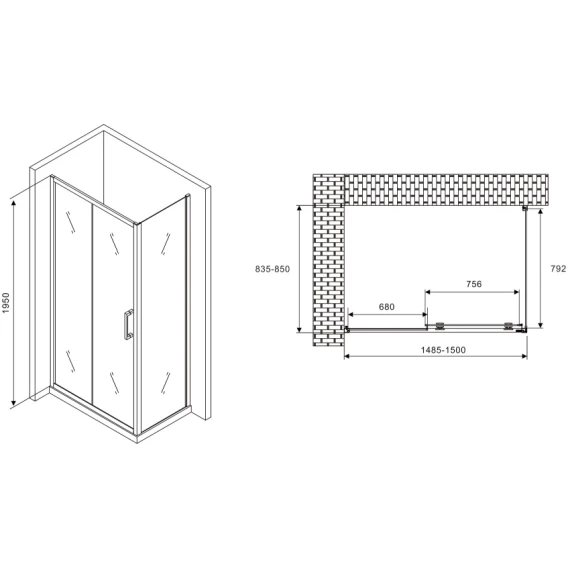 Душевой уголок 150x85 см Abber Schwarzer Diamant AG30150B-S85B прозрачное