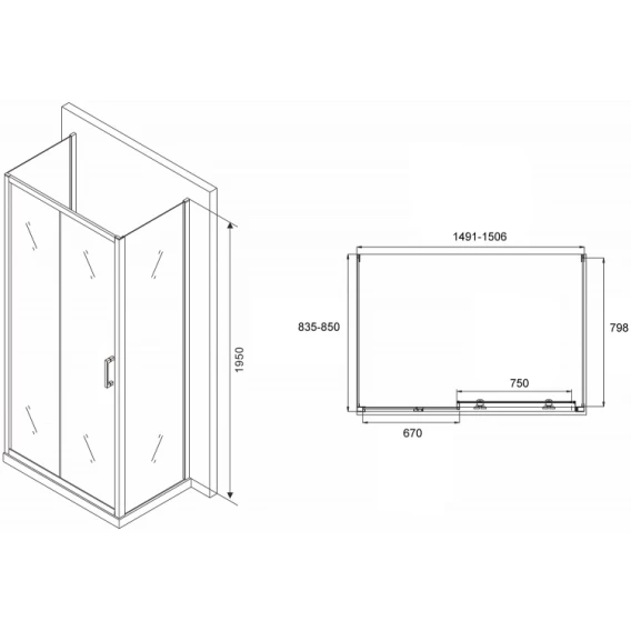 Душевой уголок 150x85 см Abber Schwarzer Diamant AG30150B-S85B-S85B прозрачное