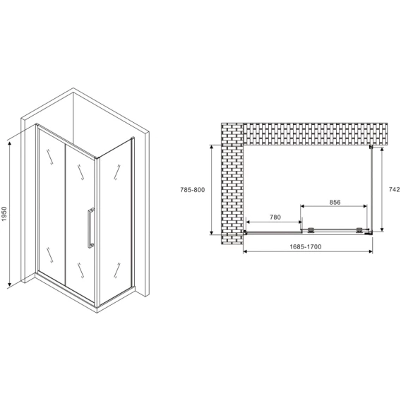 Душевой уголок 170x85 см Abber Schwarzer Diamant AG30170BH-S85B-S85B прозрачное