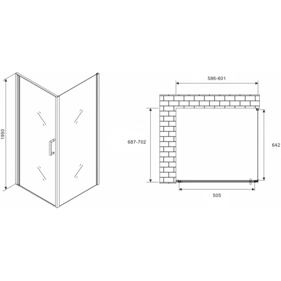 Душевой уголок 150x85 см Abber Schwarzer Diamant AG30150H-S85-S85 прозрачное