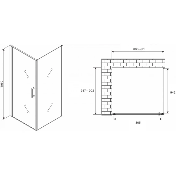 Душевой уголок 160x85 см Abber Schwarzer Diamant AG30160MH-S85M-S85M матовое