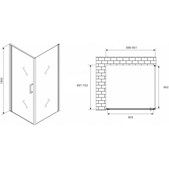 Душевой уголок 170x75 см Abber Schwarzer Diamant AG30170H-S75-S75 прозрачное