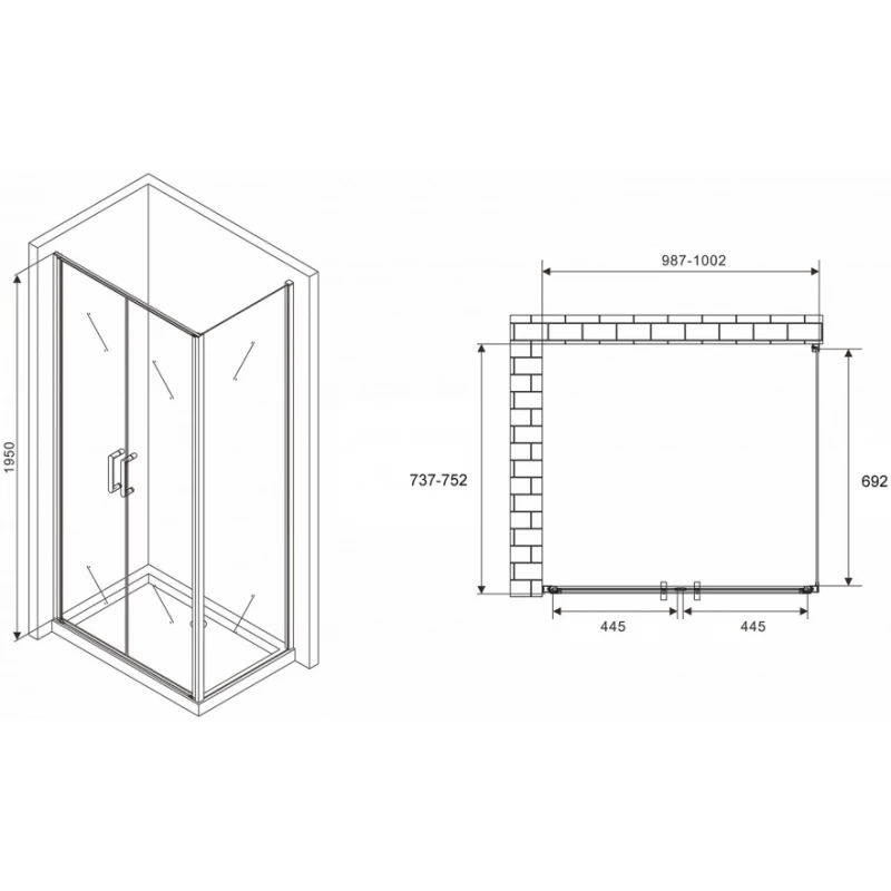 Душевой уголок 100x75 см Abber Sonnenstrand AG04100BC-S75B прозрачное
