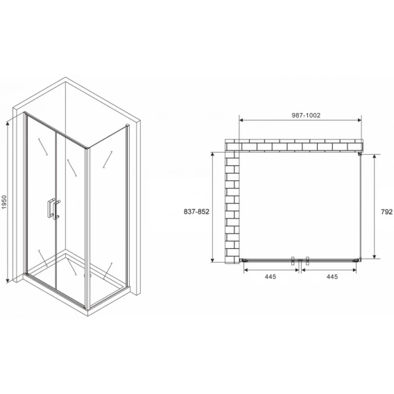 Душевой уголок 100x85 см Abber Sonnenstrand AG04100BC-S85B прозрачное