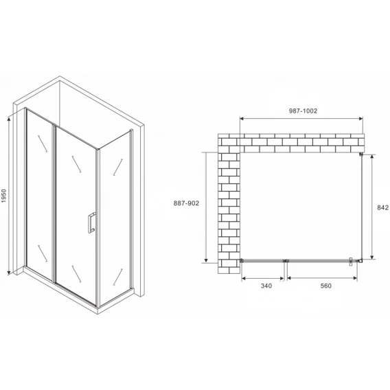Душевой уголок 170x85 см Abber Schwarzer Diamant AG30170BH-S85B-S85B прозрачное