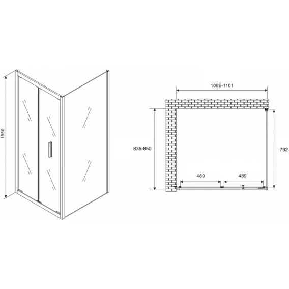 Душевой уголок 150x85 см Abber Schwarzer Diamant AG30150BH-S85B прозрачное
