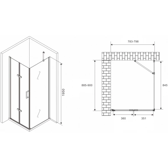 Душевой уголок 79,8x90 см Abber Zart AG08080P-S91 прозрачное