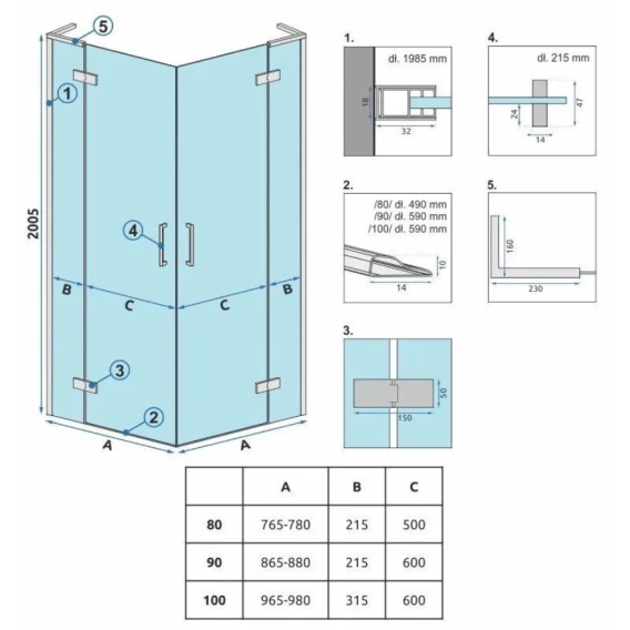Душевой уголок 98x98 см Rea Hugo REA-K6602 прозрачное