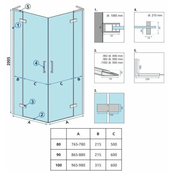 Душевой уголок 98x98 см Rea Hugo REA-K6605 прозрачное