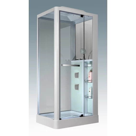 Душевой шланг, Душевая лейка, Полочка, Ручки, Подсветка, Верхний душ, Динамик, Поддон, Радио, Смеситель, Сифон, Ножки