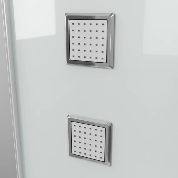 Душевой шланг, Душевая лейка, Полочка, Ручки, Подсветка, Верхний душ, Динамик, Поддон, Радио, Смеситель, Сифон, Ножки