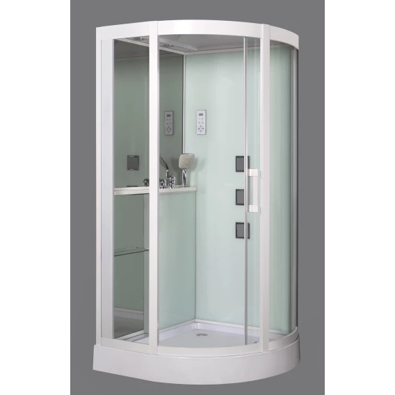 Душевой шланг, Душевая лейка, Полочка, Ручки, Подсветка, Верхний душ, Динамик, Поддон, Радио, Смеситель, Сифон, Ножки