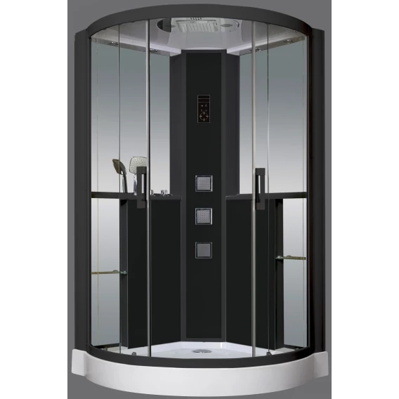Душевой шланг, Душевая лейка, Полочка, Ручки, Подсветка, Верхний душ, Динамик, Поддон, Радио, Смеситель, Сифон, Ножки