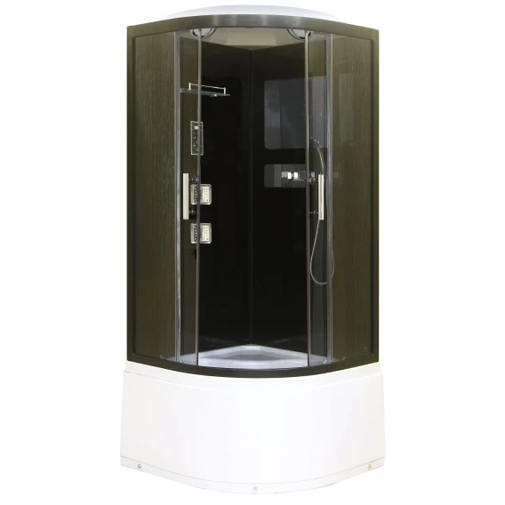 Душевой шланг, Душевая лейка, Держатель для душевой лейки, Подключение для душевого шланга, Полочка, Подсветка, Верхний душ, Динамик, Металлический каркас, Поддон, Сиденье, Смеситель, Сифон, Ножки, Зеркало