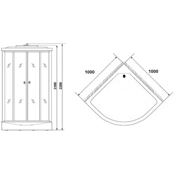 Душевой шланг, Душевая лейка, Держатель для душевой лейки, Подключение для душевого шланга, Полочка, Подсветка, Верхний душ, Динамик, Поддон, Радио, Смеситель, Сифон, Ножки, Зеркало