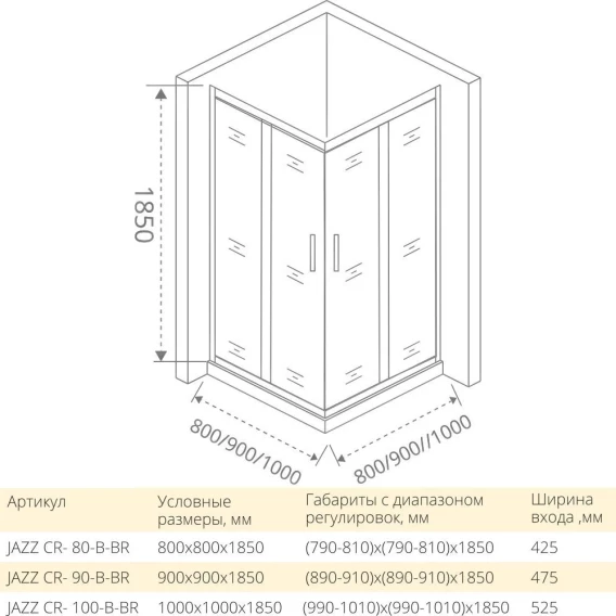 Душевой уголок 100x100 см Good Door Jazz CR-100-B-BR тонированное