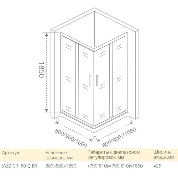 Душевой уголок 80x80 см Good Door Jazze CR-80-G-BR grape