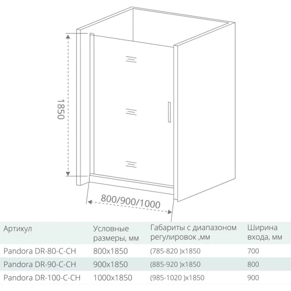 Душевая дверь 80 см Good Door Pandora DR80-C-CH прозрачное