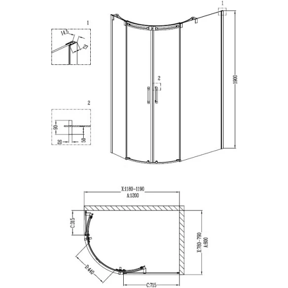 Душевой уголок 119x79 см Grossman Galaxy GR-4120R прозрачное