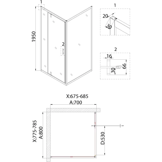 Душевой уголок 78,5x68,5 см Niagara NG-63-8A-A70 прозрачное