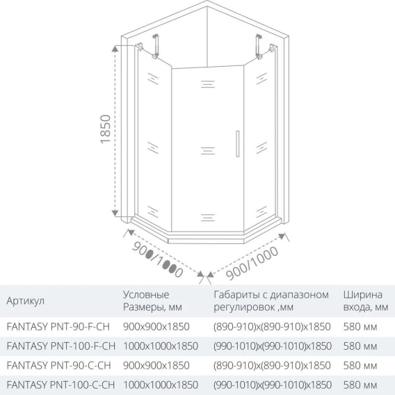 • Габариты с диапазоном регулировок, мм: (990-1010)x(990-1010)x1850