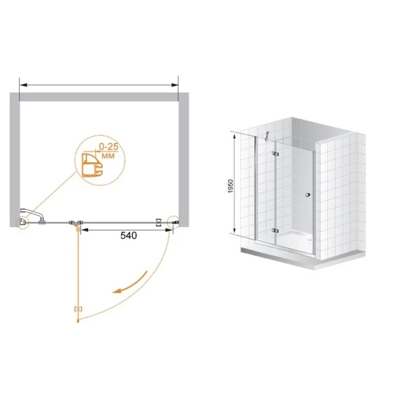 • Поддон: типа AH или барьер из искусственного мрамора типа B