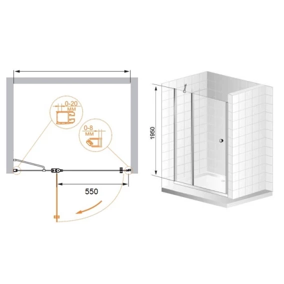 • Тип дверей: одна распашная дверь с одним неподвижным стеклом
