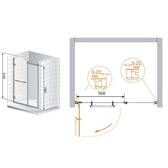 • Стекло: 8 мм; PP(матовое с прозрачным узором)