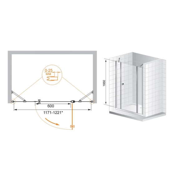 • Габариты с диапазоном регулировок, мм: (1171-1221)х1970