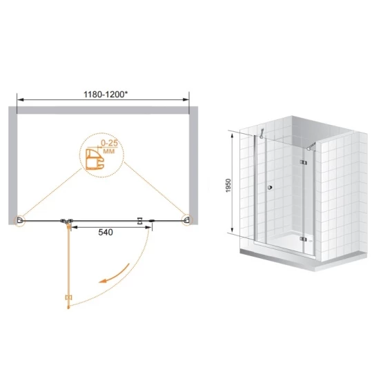 • Габариты с диапазоном регулировок, мм: (1180-1220)х1950