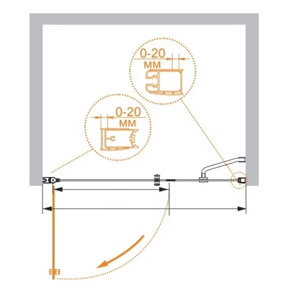 • Тип дверей: одна распашная дверь с одним неподвижным стеклом