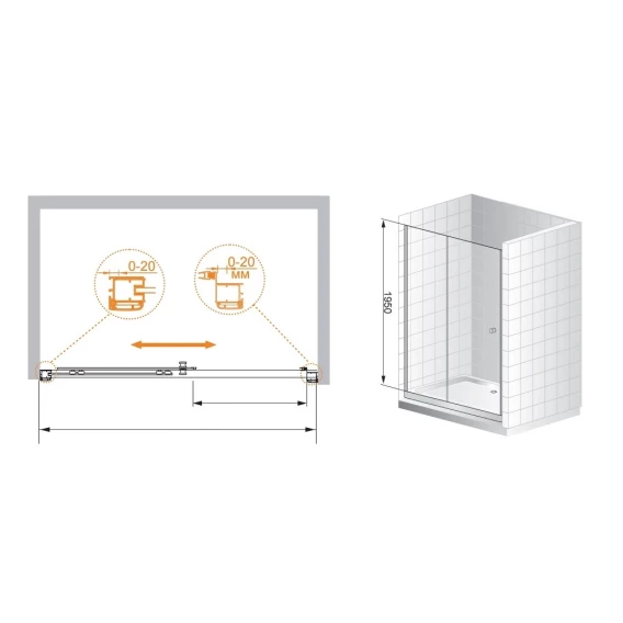 • Тип дверей: одна раздвижная секция с одним неподвижным стеклом
