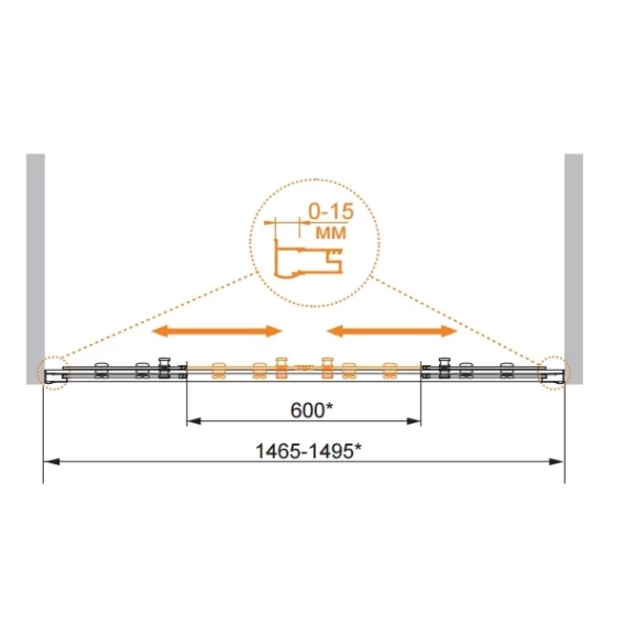 • Габариты с диапазоном регулировок, мм: (1465-1495)x1400