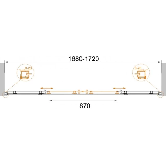 • Габариты с диапазоном регулировок, мм: (1680-1720)x1950