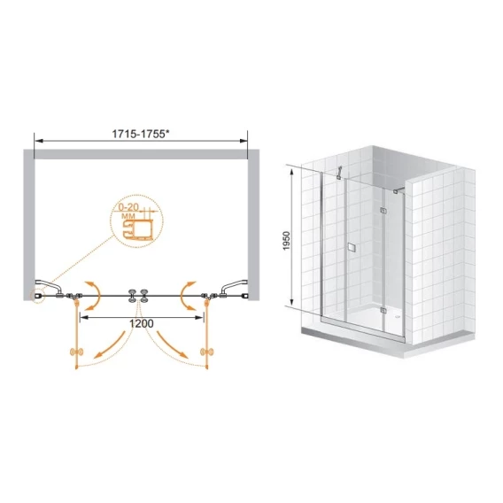 • Габариты с диапазоном регулировок, мм: (1714-1754)x1950