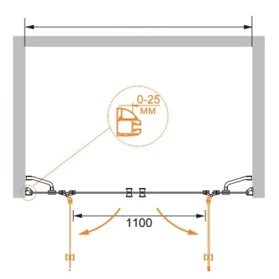 • Габариты с диапазоном регулировок, мм: (2314-2354)x1950
