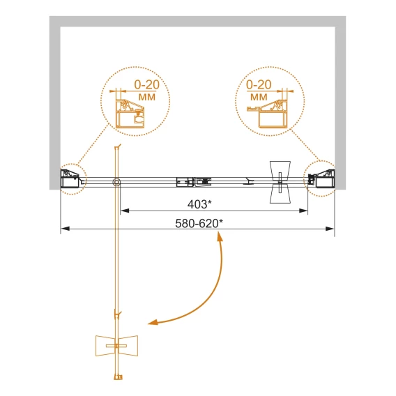 • Габариты с диапазоном регулировок, мм: (580-620)х1950