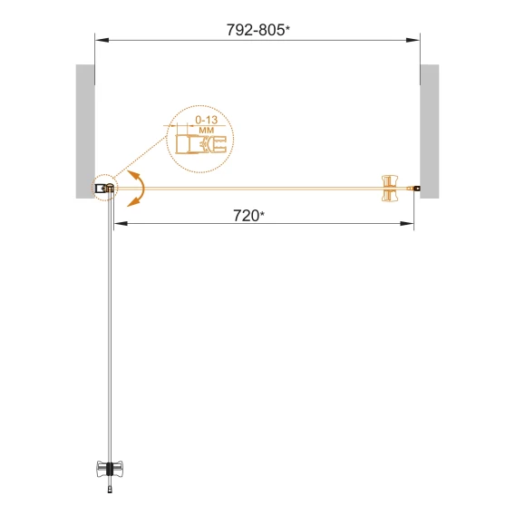 • Габариты с диапазоном регулировок, мм: (792x805)x1900