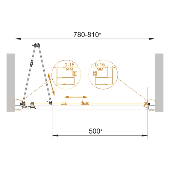 • Габариты с диапазоном регулировок, мм: (780-810)x1900