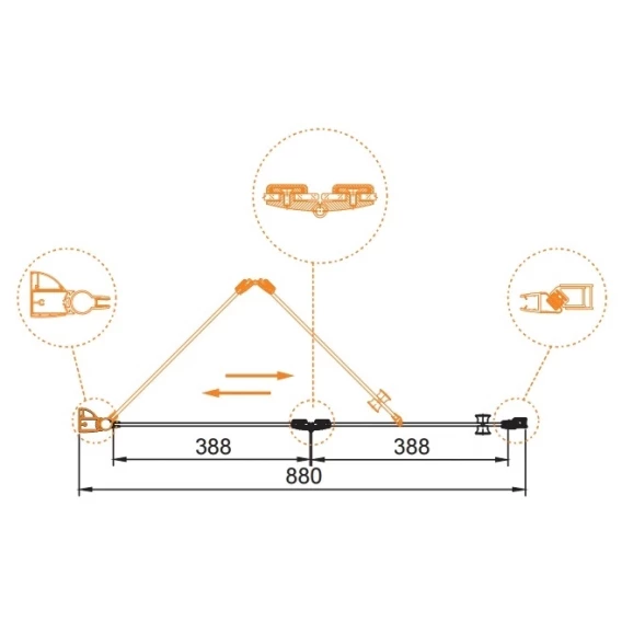 • Габариты с диапазоном регулировок, мм: (885-913)х1950