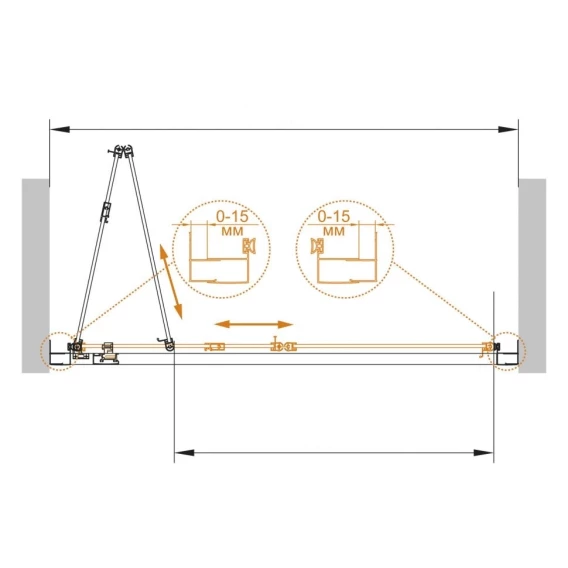 • Габариты с диапазоном регулировок, мм: (880-910)x1900