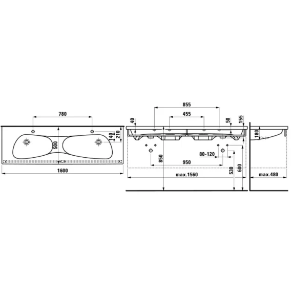 Двойная раковина-столешница 160 см Laufen Palomba 8.1480.9.000.104.1
