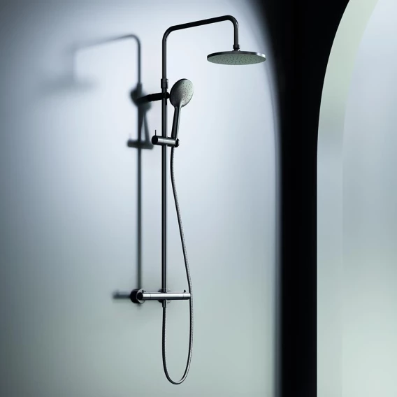 Металлическая розетка, Эксцентрики, Душевой шланг, Душевая лейка, Держатель для душевой лейки, Верхний душ, Штанга душевая, Термостат